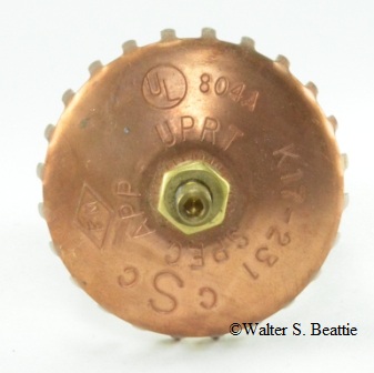 - 1961 Viking Upright Sprinkler Head. Removed from service due to paint.